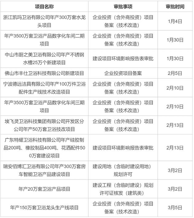 回复:11个卫浴新项目备案获通过